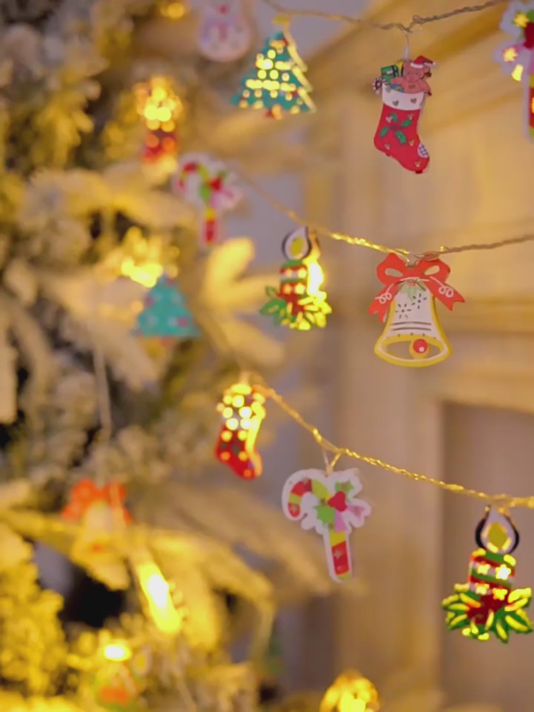 High-quality LED light string with Christmas elements.