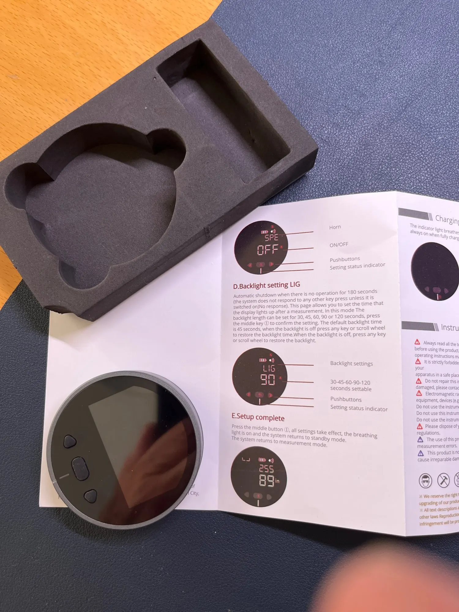 Backlight time: 30-180 seconds