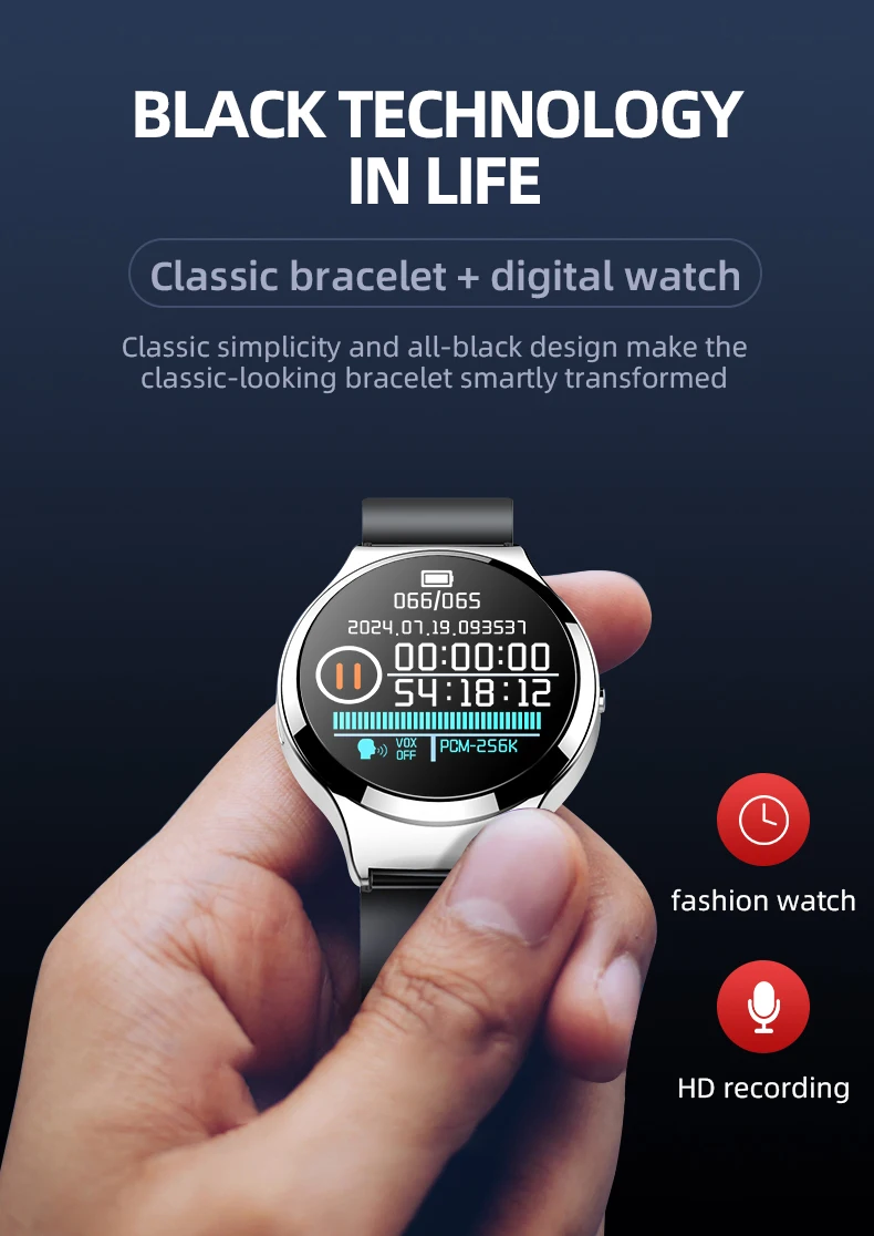 1. OLED screen, zinc alloy material, watch style, silver, high concealment, with clock display function.